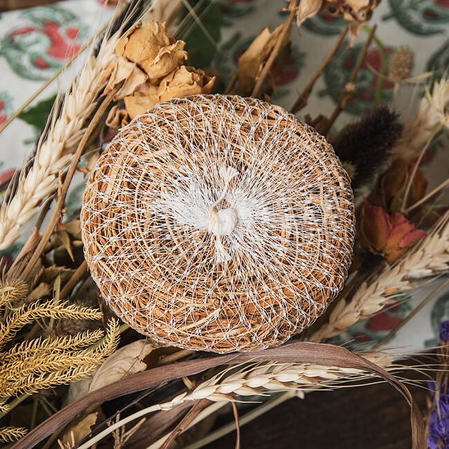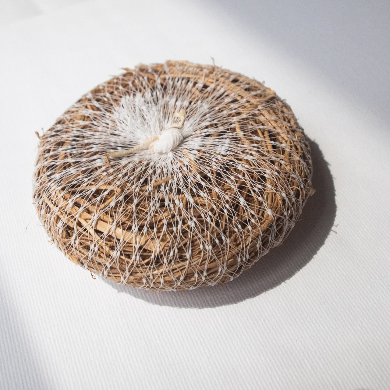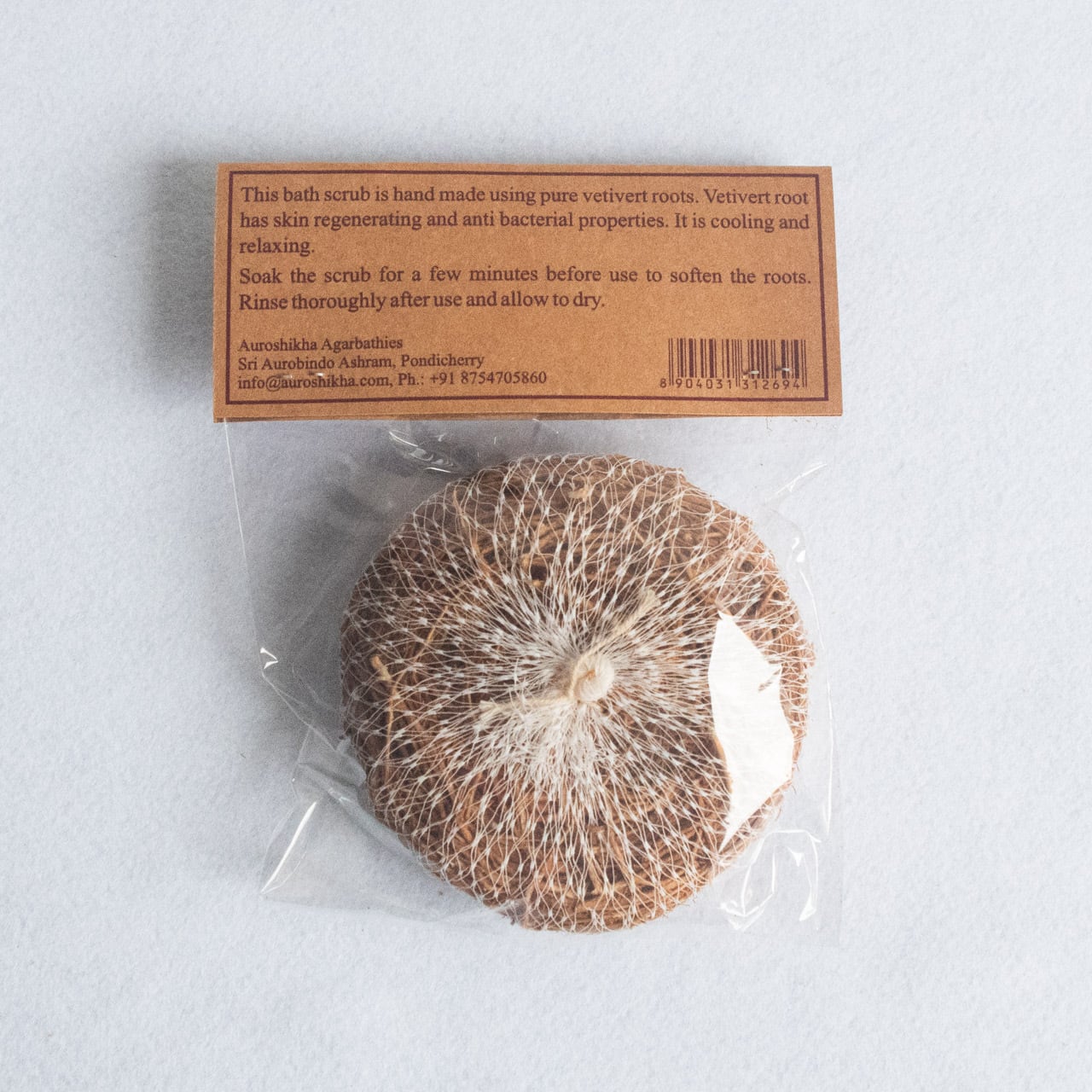 原産国インドの天然ベチバーの根を編んだボディ・スクラブです。