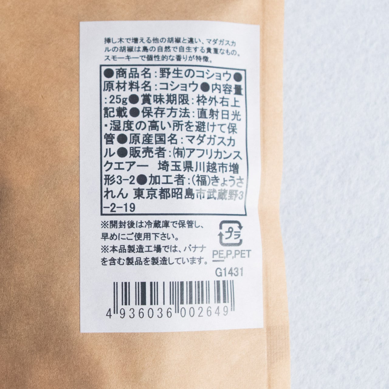 ワイルドペッパー マダガスカル の野生のコショウ 25G Voatsiperifery AFRICAN TABLE