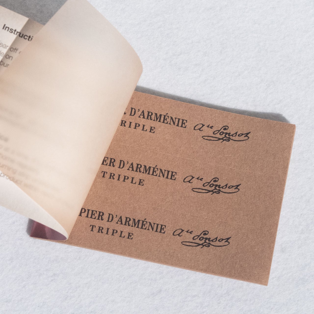 「パピエダルメニイ」は、1885年から作られているフランスの伝統的なペーパーインセンス(紙のお香)です。