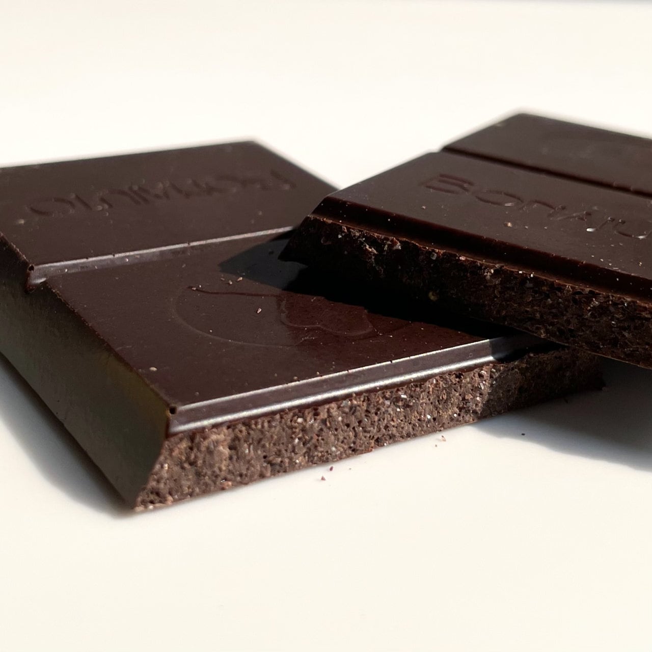 板チョコ状の表面は少し粉っぽく、口に含むと舌の上では砂糖がざらつき、カカオが滑らかに溶け出したりはしません。
