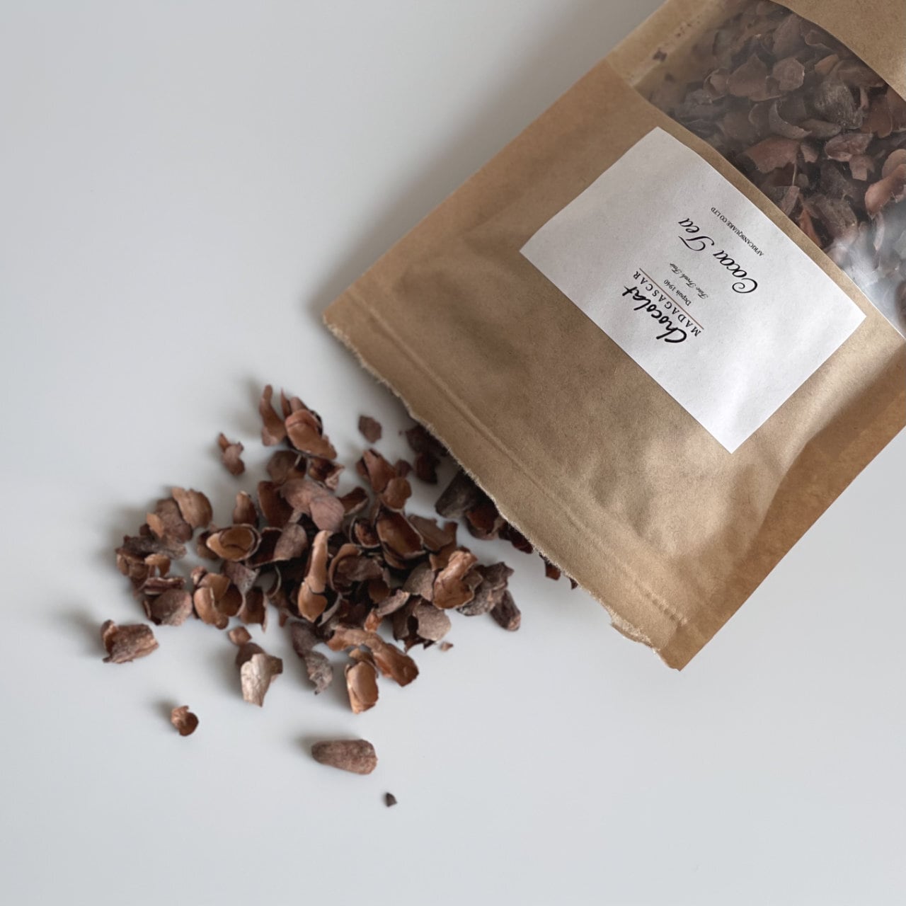 原料はローストしたカカオ豆の薄皮(ハスク・シェル)のみになります。