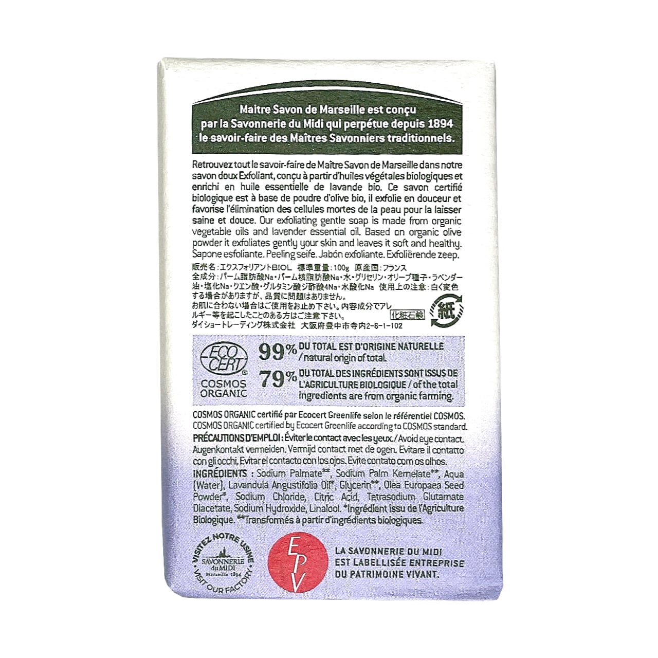 ラベンダー スクラブ石鹸 ビオ 100g /Maitre Savon de Marseille/メートル・サボン・ド・マルセイユ <フランス製> BIO オーガニック