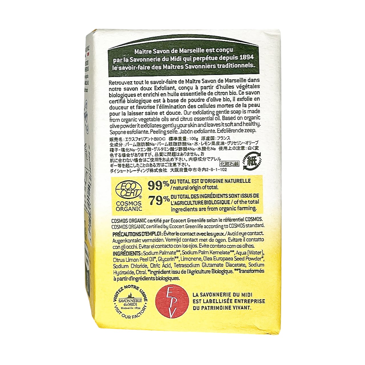 レモン スクラブ石鹸 ビオ 100g /Maitre Savon de Marseille/メートル・サボン・ド・マルセイユ <フランス製> BIO オーガニック
